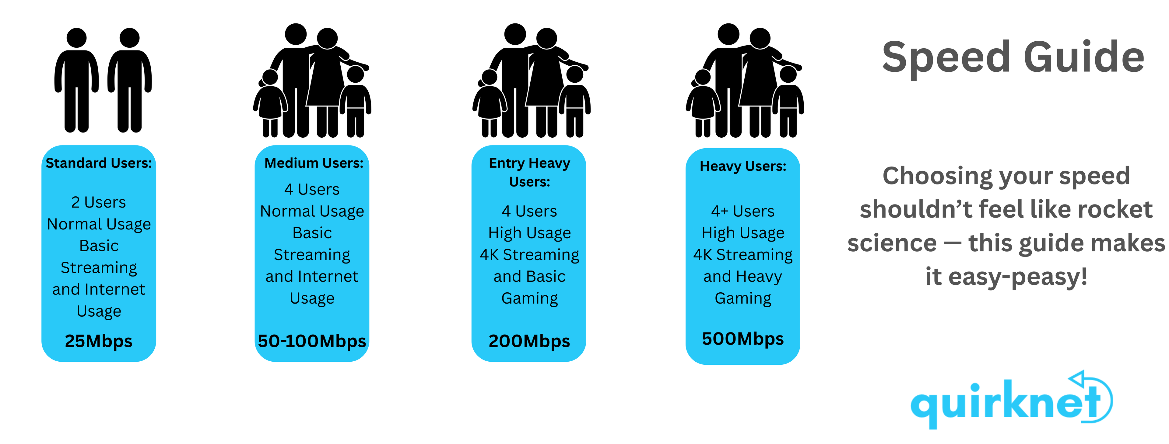 At QuirkNet, we believe everyone deserves blazing-fast internet without the blazing-high prices. We keep it simple: fast fibre, fair pricing, no hidden nonsense. Whether you stream, game, scroll, or stalk your ex — we’ve got you covered.